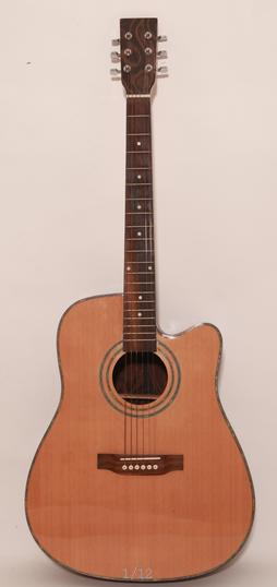FACEPLATE:Top spruce BACK/SIDE PLATE:Black burl Fingerboard:Rosewoodcolor shell Under code:Nadu wood or mahogany string: steel Tuning:bidirection Nut:Whole sealing tail top:Black ABS in the back:ABS Edge:five string color shell Tail pin:Nickel plating